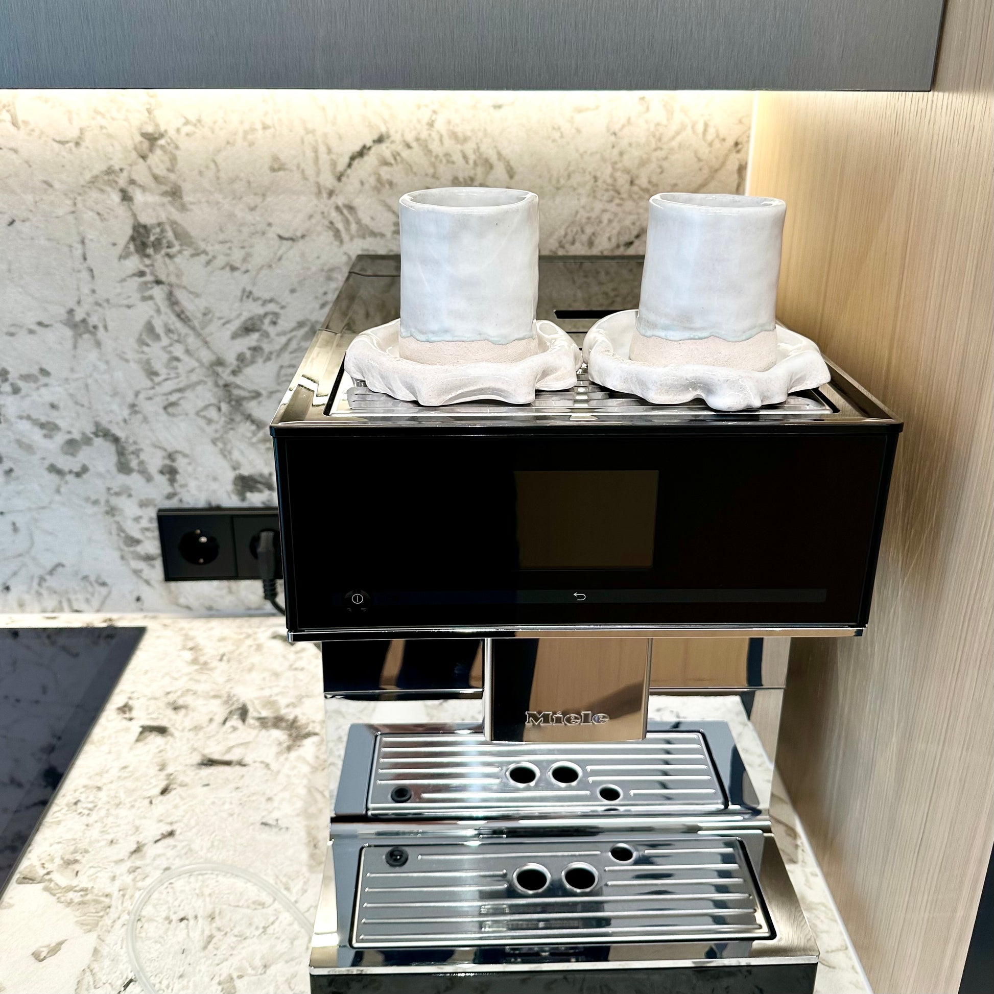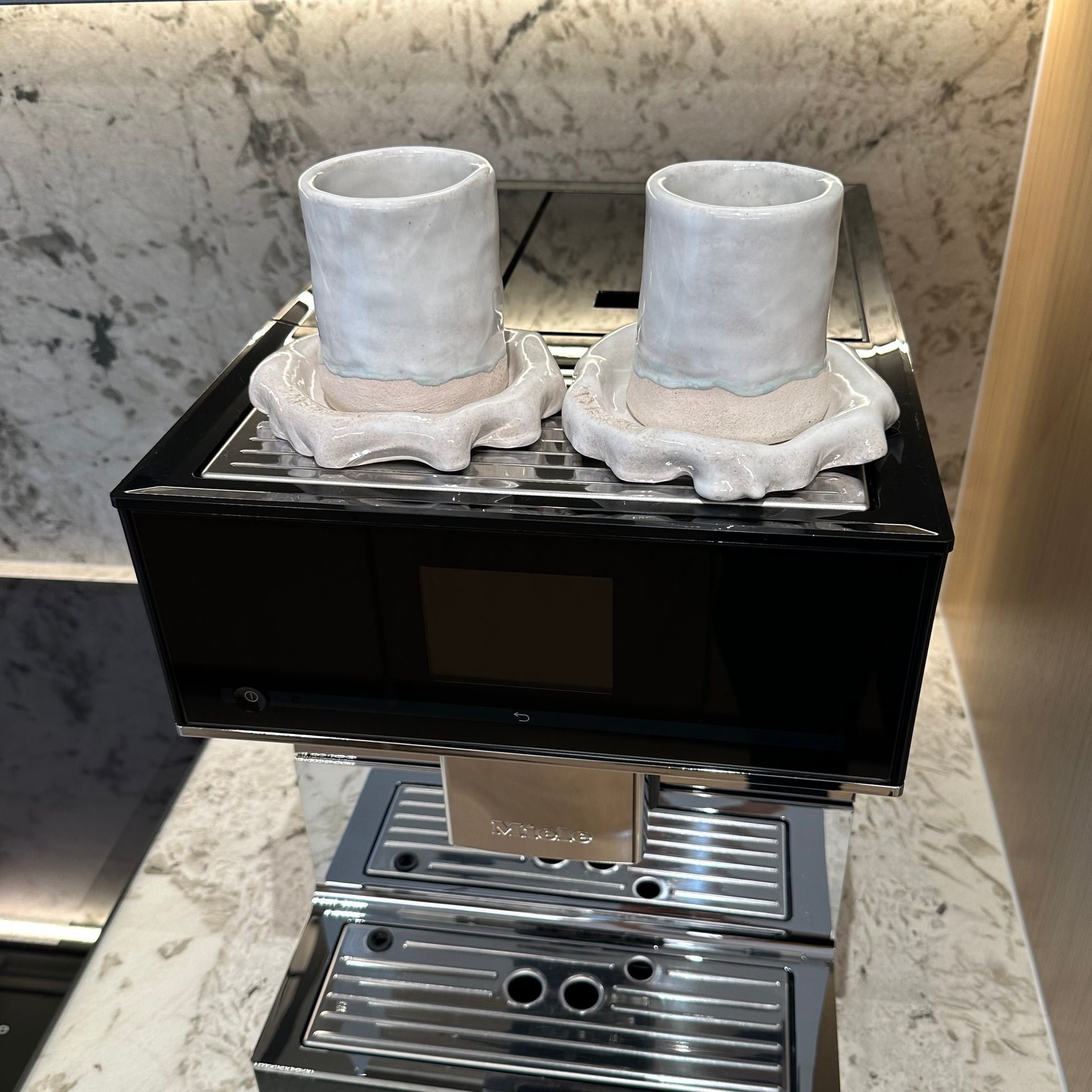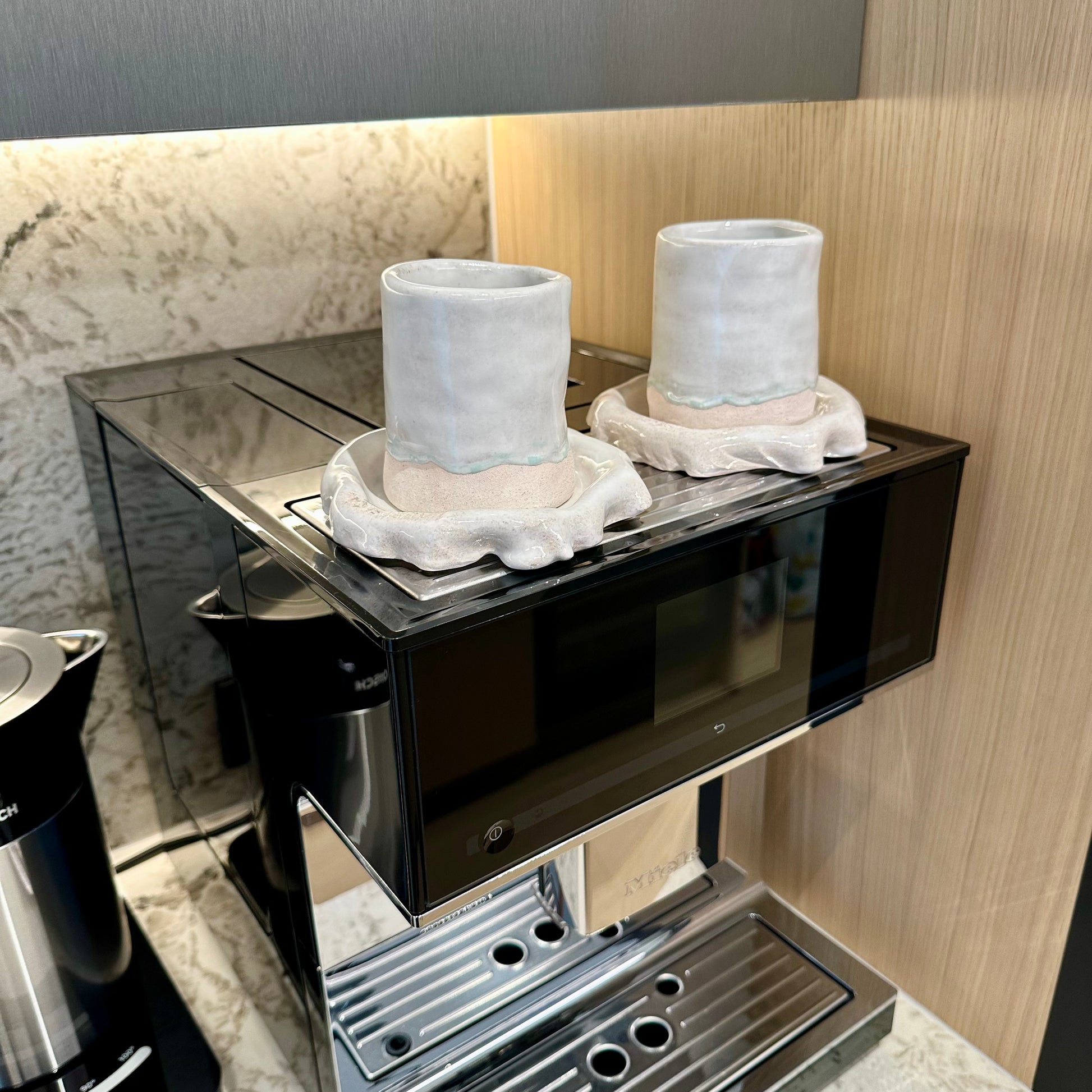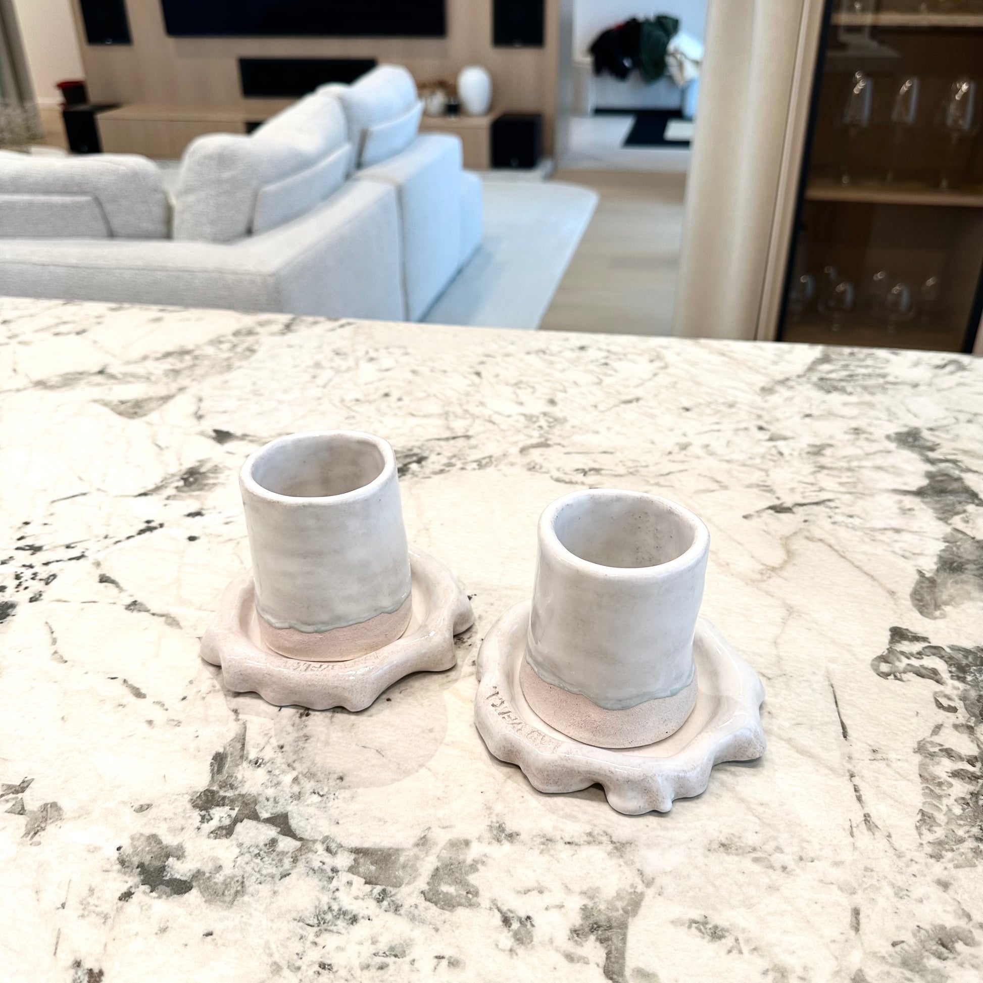 Puodelio ir lėkštutės rinkinys - unikalus rankų darbo keramikos kūrinys.