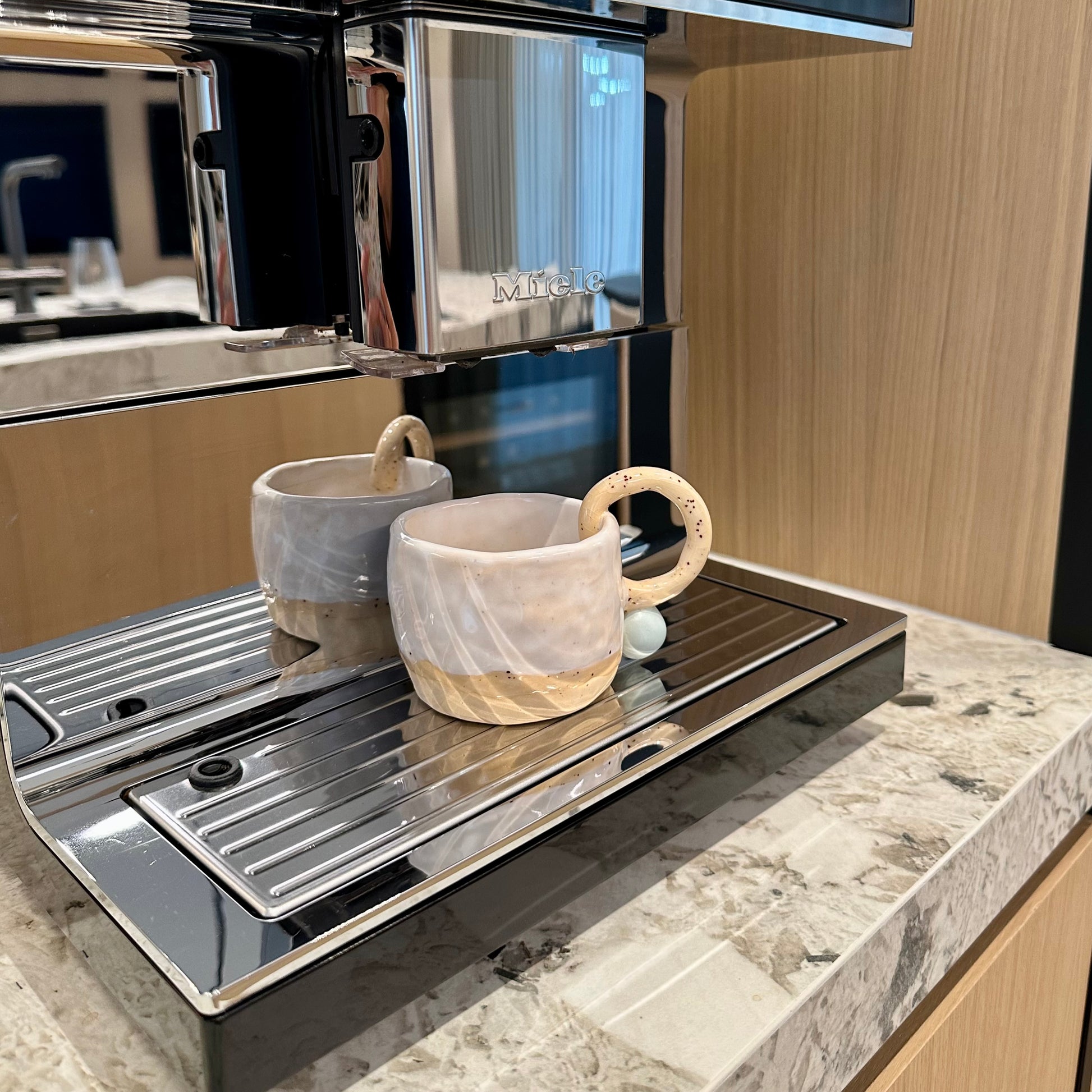 Šis rankų darbo puodelis pasižymi natūraliu, organišku grožiu ir subtilia minimalistine estetika.