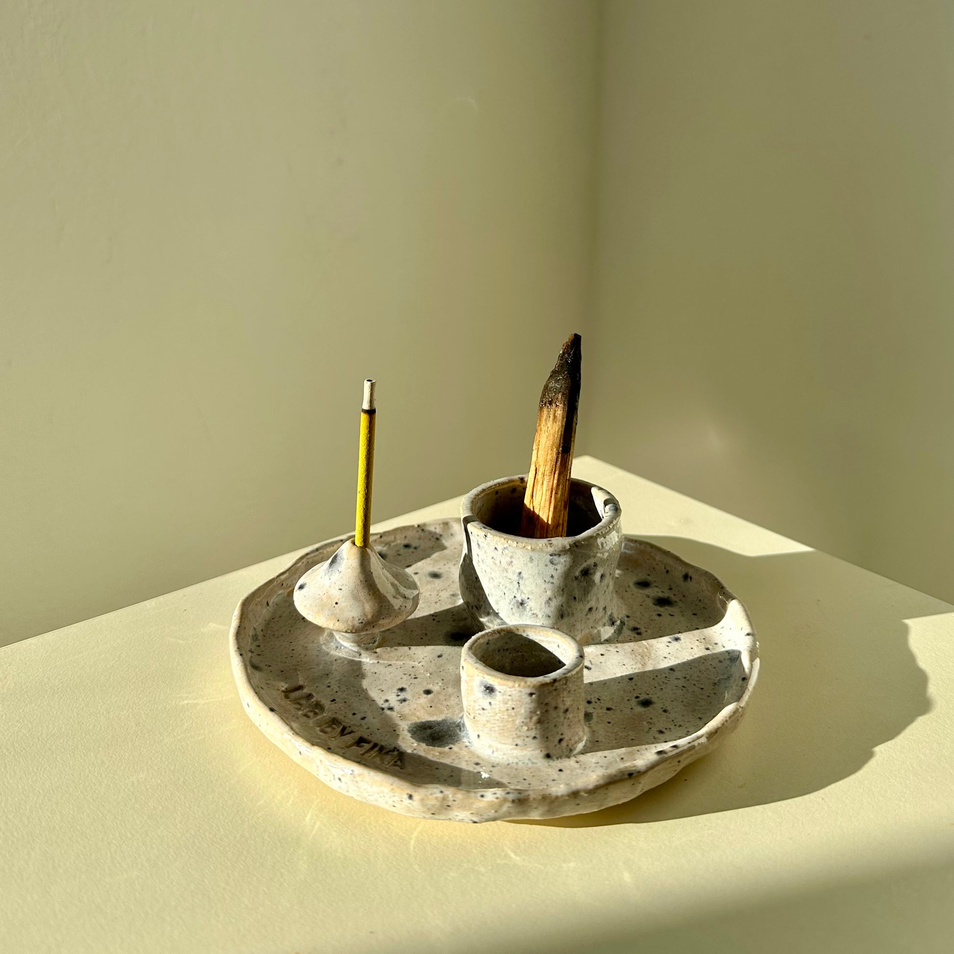 Rankų darbo akmens masės smilkalinė.