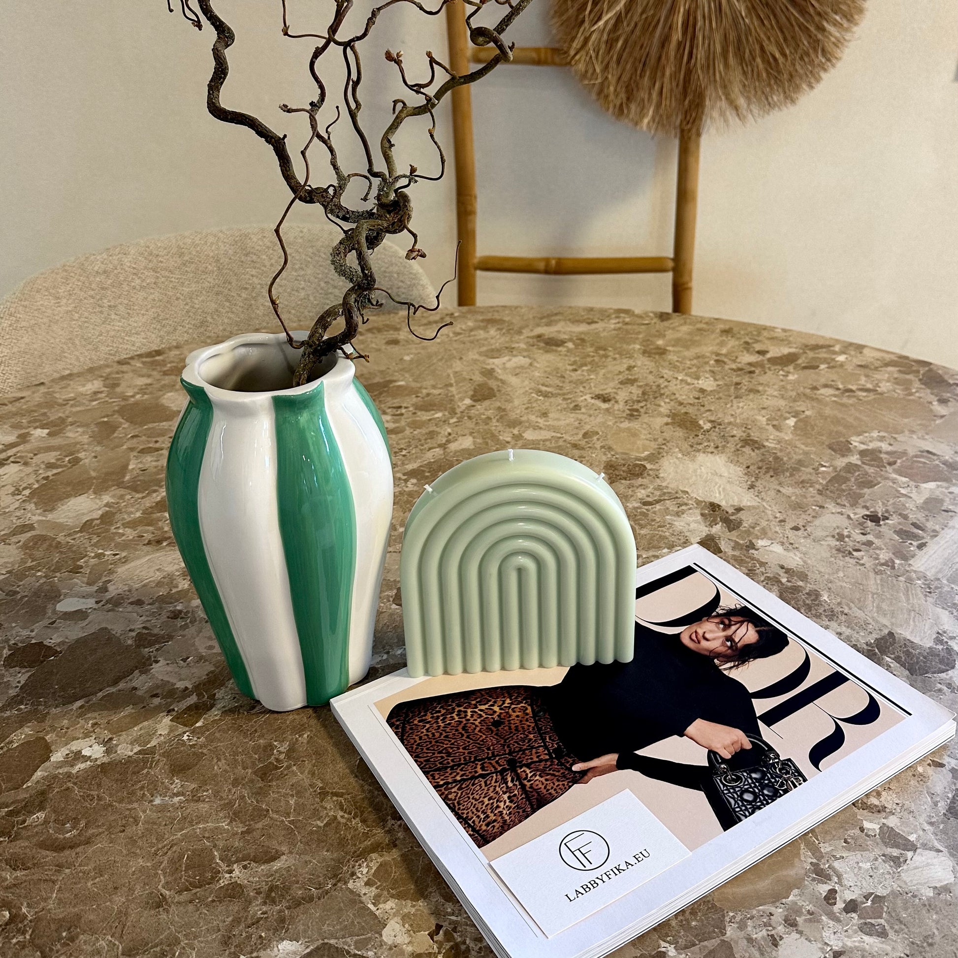 Itin pamėgtos interjere vaivorykštės formos, malonaus kvapo didelė žvakė. Puikiai tinka ne tik pasipuošti ir pasikvepinti namus, bet ir kaip graži dovana įkurtuvininkams.