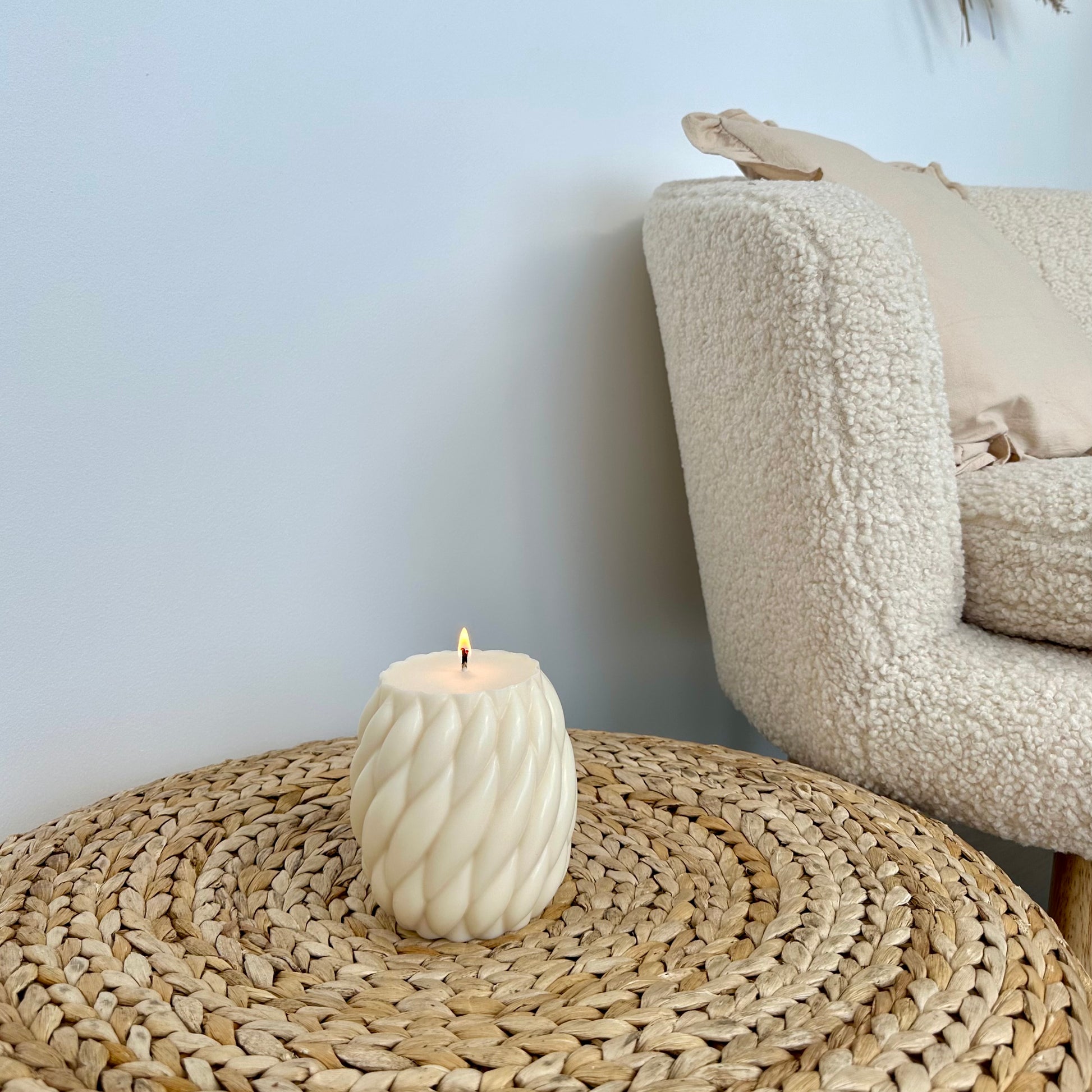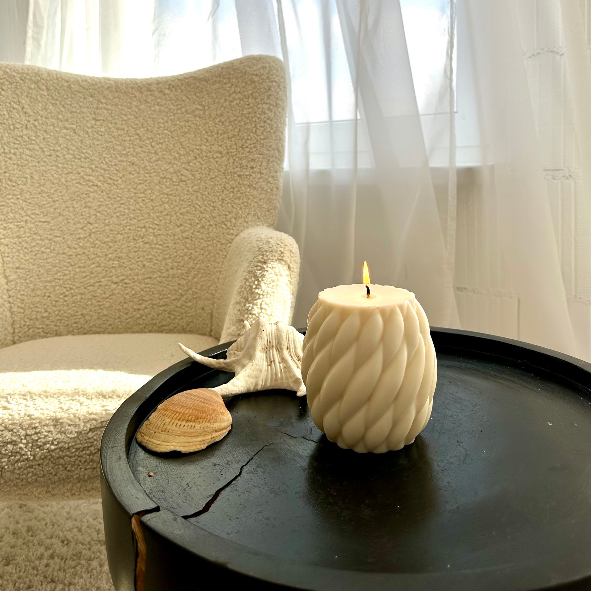 Įspūdingo dydžio ir grožio rankomis lieta žvakė. Ne tik papuoš namus, bet ir skleis malonų kvapą. Šiai žvakei pagaminti yra sunaudojamas 1 kg natūralaus sojų vaško.